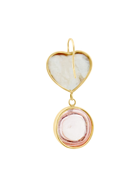Pearl Heart and Kunzite Gumdrop Earrings